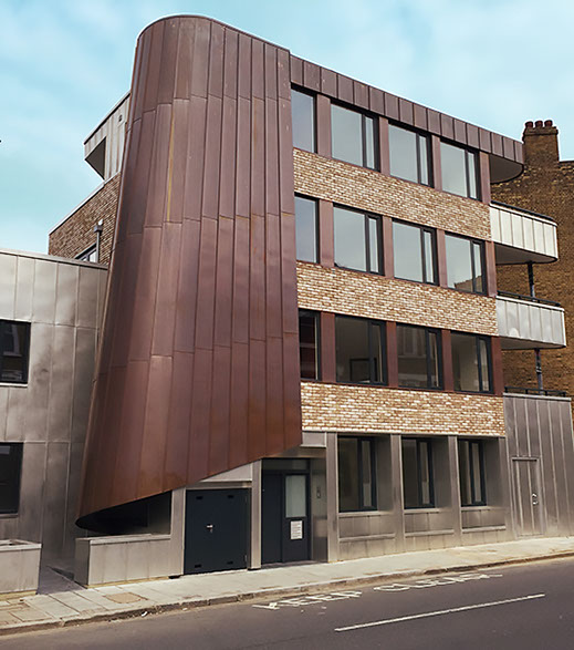 Its exciting design features a copper swirl reflecting the theatrical heritage of Landor Road. The local authority had previously rejected a number of planning applications by previous owners but we were able to work with the council to produce this unique building.